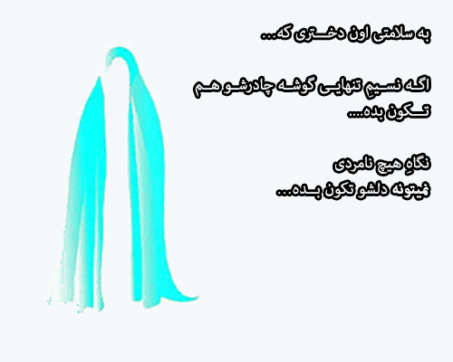 اصلا موافق نیستم با این قسمت که چادر رو مترادف سیبیل داشتن طرف میذارن بعضی آقایون.... حداقل ما و همه بچه بسیجی هامون که این طوری نیستیم... تمیزی ربطی به چادر و اسلام نداره چیزی که تو احادیثمون هم خیلی بهش اشاره شده.. یعنی چی که کسایی که خیلی به این شدت با خدا معامله میکنن برنده ترند؟؟؟این آدما فقط عده ای رو به اسلام بدبین میکنن که یعنی اسلام دین هَپل بودن و بینظمی... عذر بابت پرحرفی"اما لازم بود"